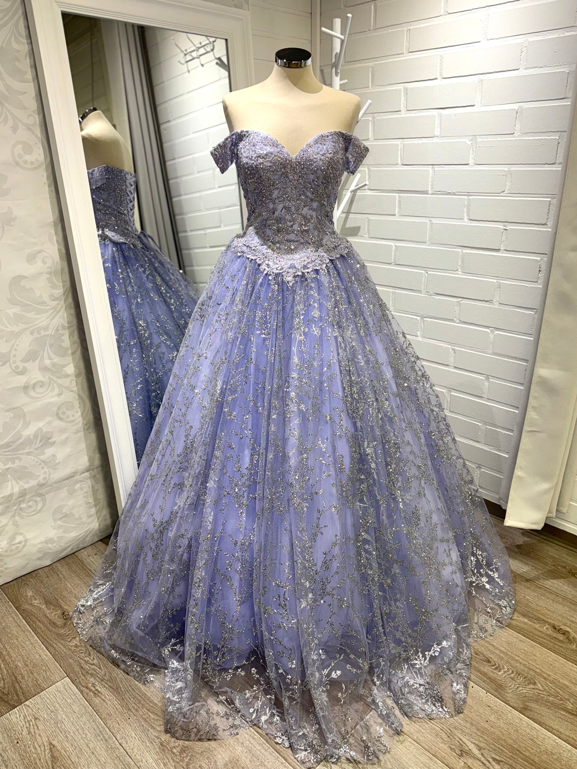 Näyttävä vanhojentanssimekko off shoulder -olkaimilla. Selässä lantiolle yltävä nyöritys.
