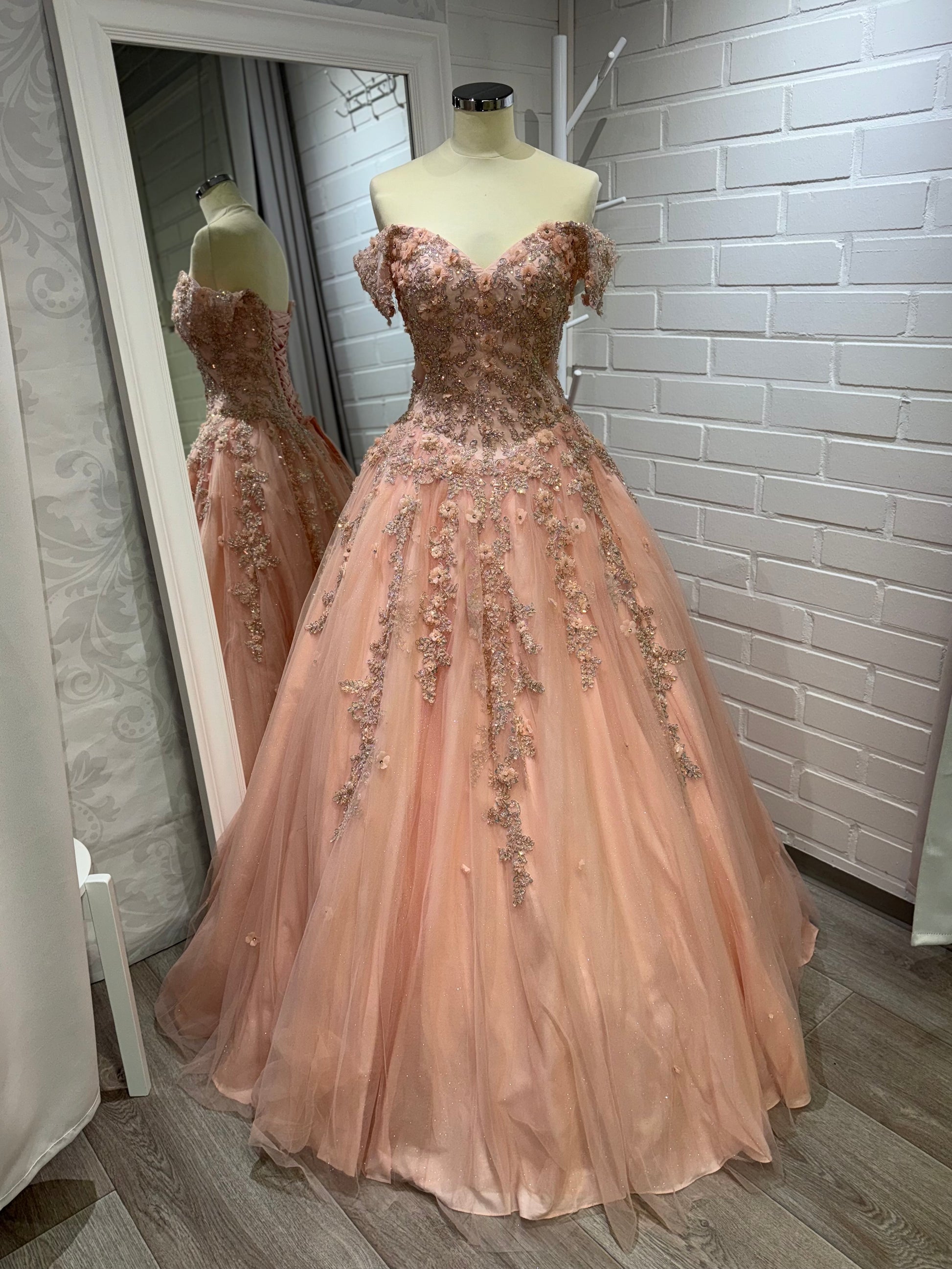 Näyttävä vanhojentanssimekko off shoulder -olkaimilla. Selässä lantiolle yltävä nyöritys.